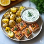 - Serve: Plate the crispy smoked paprika potatoes alongside the lemon-dill salmon bites. Add a generous dollop of the chilled Greek yogurt cucumber sauce to the side. Optionally, garnish with lemon wedges for an extra burst of freshness and tang.