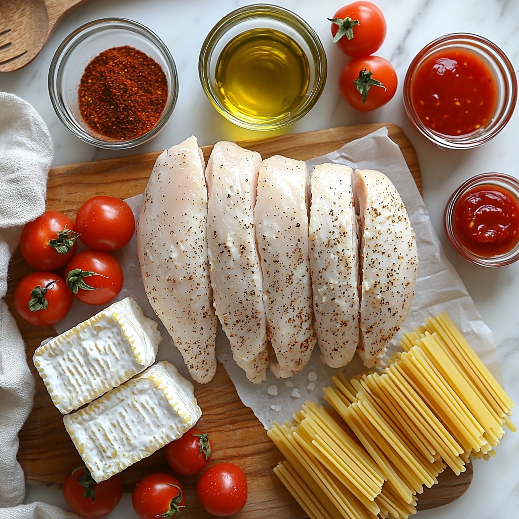 Every ingredient in this recipe is simple yet essential, working together to create a dish bursting with flavor, texture, and color. From the spicy Cajun seasoning to the creamy Boursin and the sweet burst of roasted cherry tomatoes, here’s what makes this pasta so irresistible.