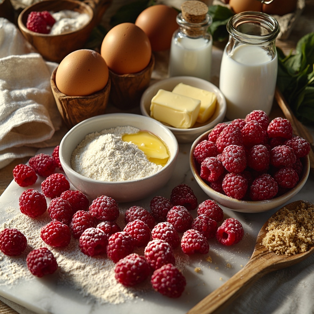 Every ingredient in this recipe is thoughtfully chosen to build layers of flavor, texture, and that irresistible bakery charm. From the fluffy cake flour to the fresh raspberries, each component plays a key role in making these muffins a standout treat.