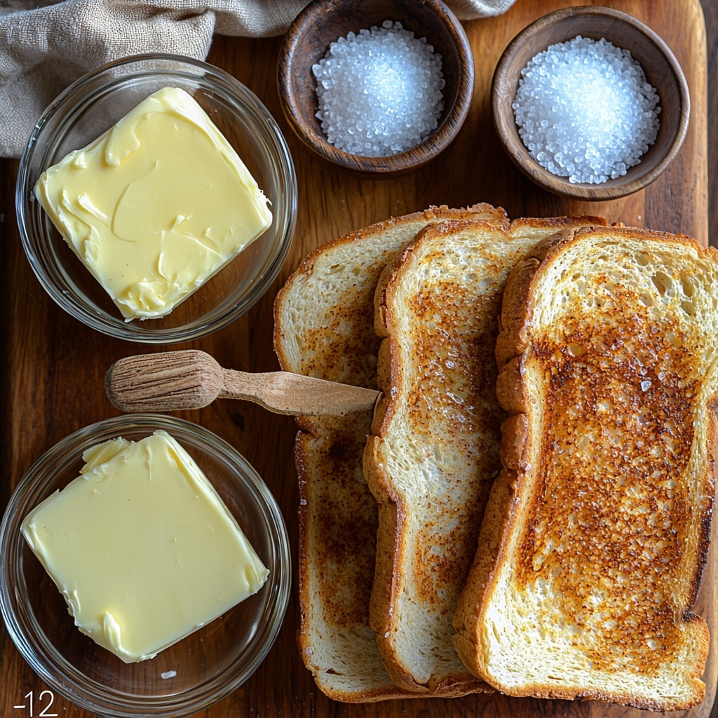 - Bake the Toast: Arrange the prepared bread slices on a baking sheet and bake them in the preheated oven for 10 minutes. This step melts the butter and begins to toast the bread.
