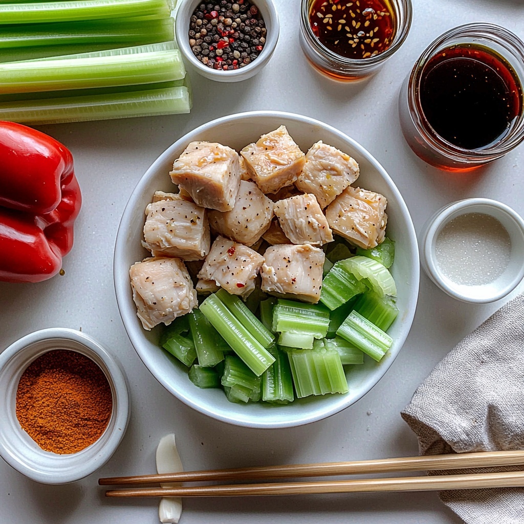 • Celery (3 stalks, sliced at an angle): Delivers a fresh, crisp bite that contrasts the tender meat.