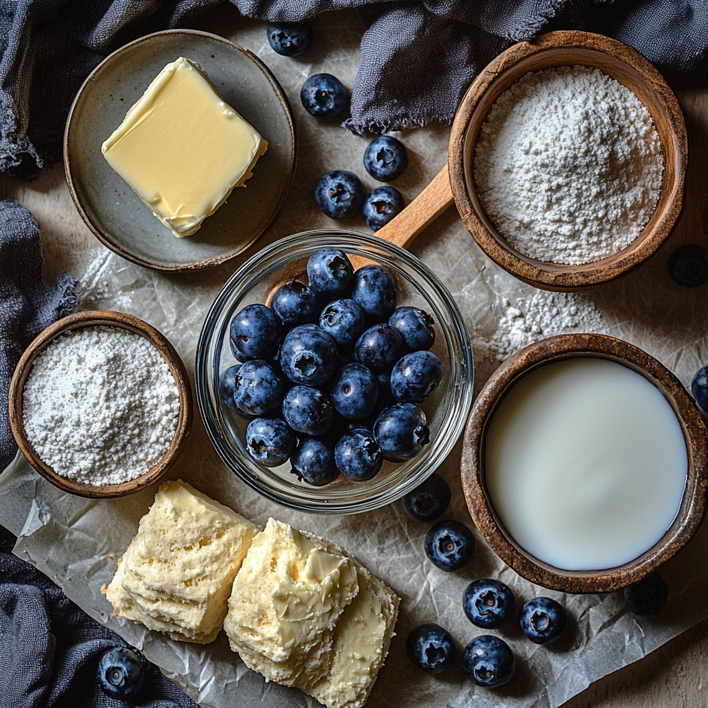 This recipe calls for straightforward, approachable ingredients that come together to deliver incredible texture and flavor. Each element plays its part, from the rich butter that ensures moistness and golden edges to the fresh blueberries that add natural sweetness and a pop of color.