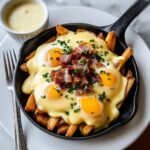 Start your day with a decadent twist on classic comfort food by making Breakfast Poutine topped with a rich, creamy hollandaise sauce. This recipe combines crispy baked hash browns, savory bacon, poached eggs, melted cheddar and mozzarella cheeses, and a delicious gravy, all elevated with a luscious homemade hollandaise sauce. Perfect for a special brunch or indulgent breakfast, it offers a delightful balance of textures and flavors.