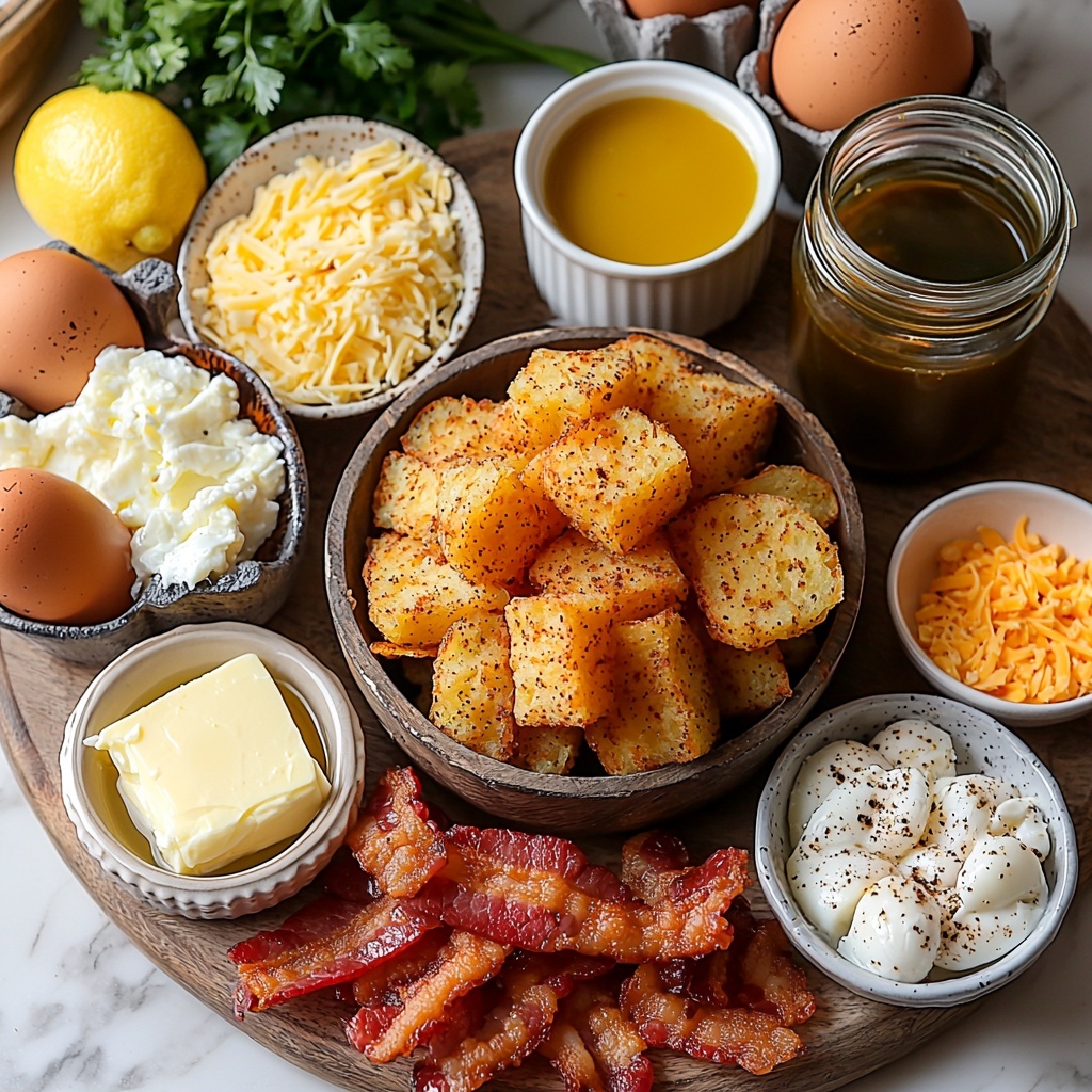 The magic of this Breakfast Poutine with Hollandaise Sauce and Crispy Bacon Recipe lies in its simple yet perfectly balanced ingredients. Each component works to build layers of flavor, texture, and color, turning ordinary staples into something exceptional and indulgent.