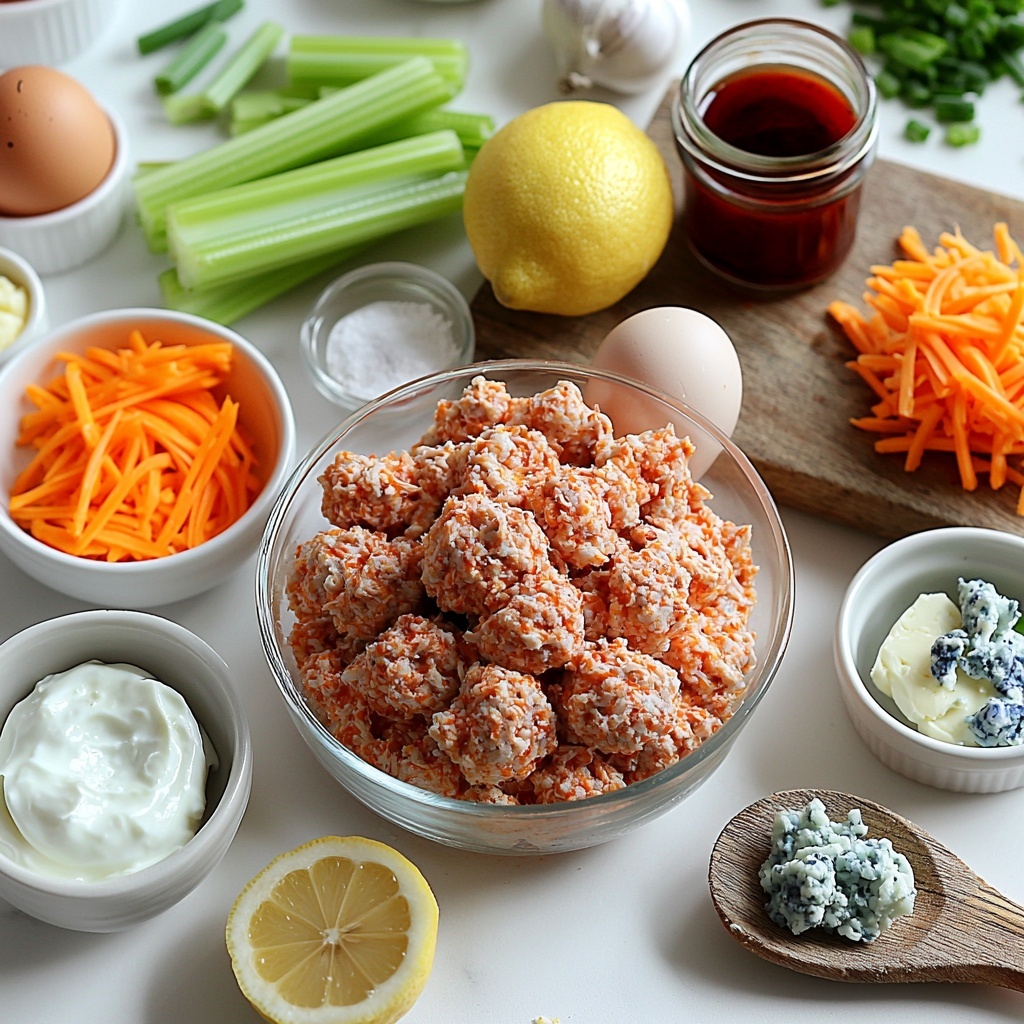 The magic behind these Buffalo Chicken Meatballs starts with simple, high-quality ingredients that each play a vital role in creating the perfect bite. From the juicy ground chicken to the crunchy panko and zesty hot sauce, every component contributes to vibrant flavor and satisfying texture.