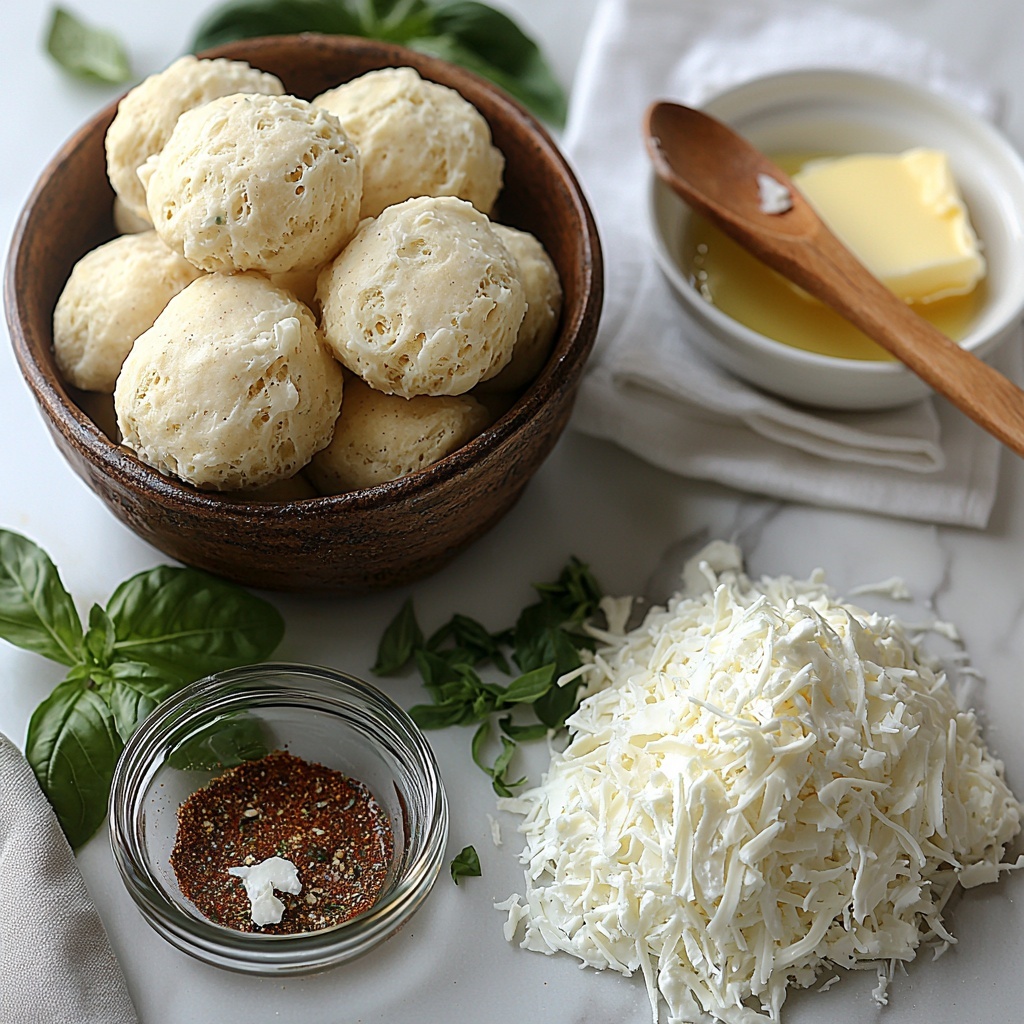 These ingredients are straightforward and pantry-friendly, each bringing something special to the Cheesy Garlic Pull Apart Rolls Recipe. From the buttermilk biscuits that provide the soft and fluffy texture to the melted butter and Italian seasoning that infuse incredible flavor, every element plays a pivotal role.