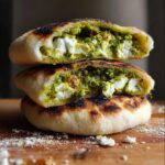 Cheesy Spinach Stuffed Flatbreads are a savory and satisfying snack or meal option featuring a soft, homemade dough stuffed with a creamy mixture of ricotta, mozzarella, Parmesan cheese, and sautéed fresh spinach. These flatbreads are pan-fried to a golden, crispy finish, making them perfect for lunch, dinner, or appetizers.