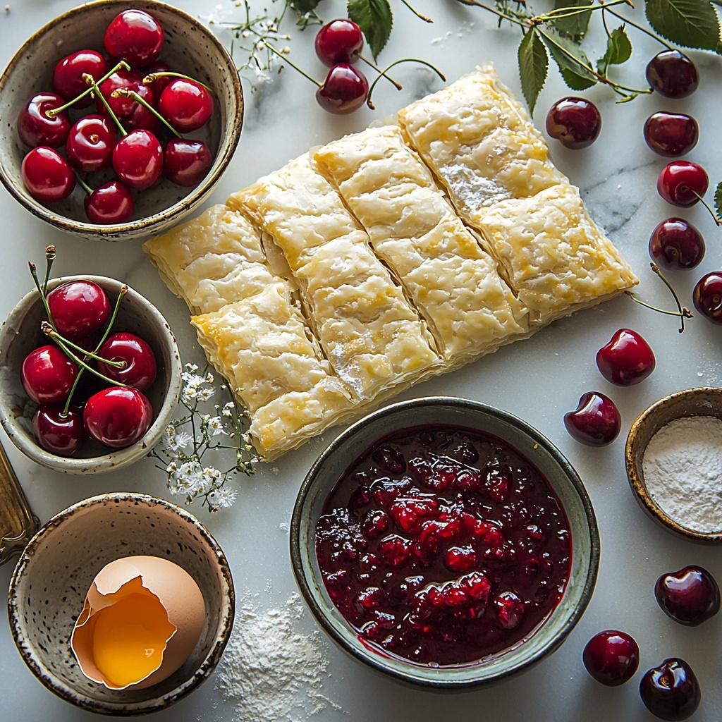 - 1 sheet puff pastry (thawed): The buttery, flaky base that puffs up beautifully during baking to hold all the cherry goodness.