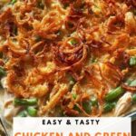 This Chicken and Green Bean Casserole is a comforting and hearty dish featuring tender shredded chicken, fresh green beans, creamy mushroom soup, and a cheesy topping finished with crispy fried onions. Perfect for a family dinner, it combines classic flavors in a simple and satisfying casserole.
