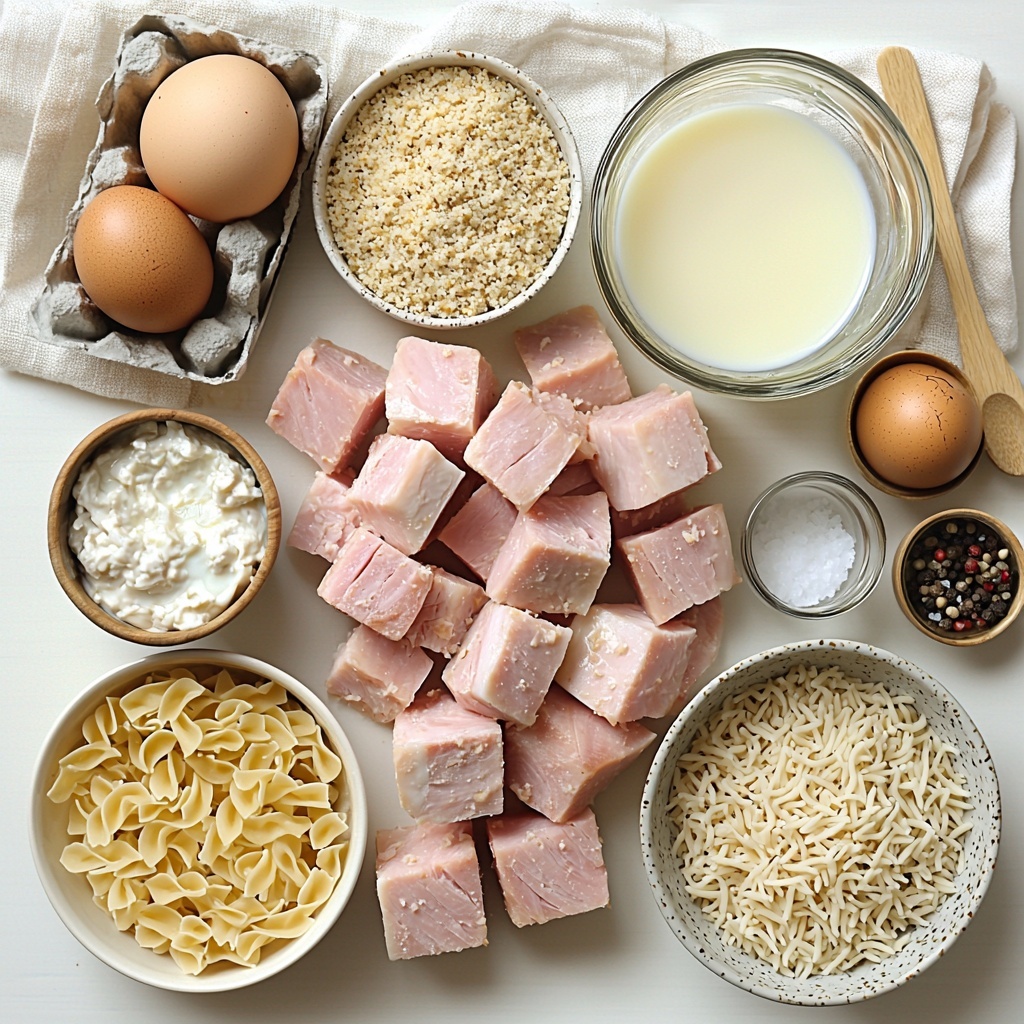 Simple, straightforward ingredients are the secret to this Chicken Cordon Bleu Casserole Recipe’s rich flavor and comforting texture. Each item plays a crucial role in creating a perfect balance of creaminess, crispiness, and savory goodness.
