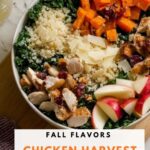 This Chicken Harvest Bowl Recipe is pretty complete on its own, but for a heartier meal, consider pairing it with warm crusty bread or a light soup like butternut squash or tomato basil. A crisp, simple green salad also pairs well, balancing richness without overpowering the main bowl.