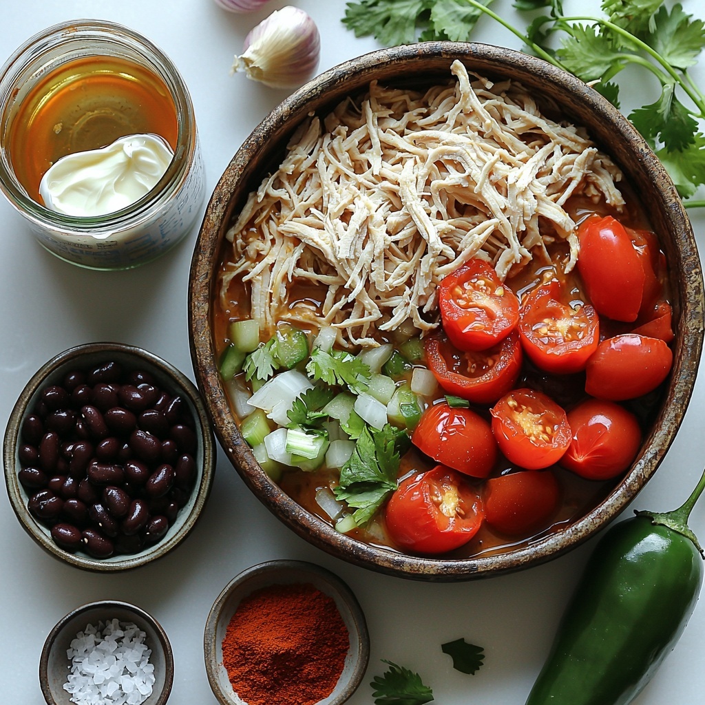 Gathering simple yet essential ingredients is what makes this soup truly shine. Each component adds its own character, enhancing the taste, texture, and inviting color that make this Chicken Poblano and Black Bean Soup Recipe so irresistible.