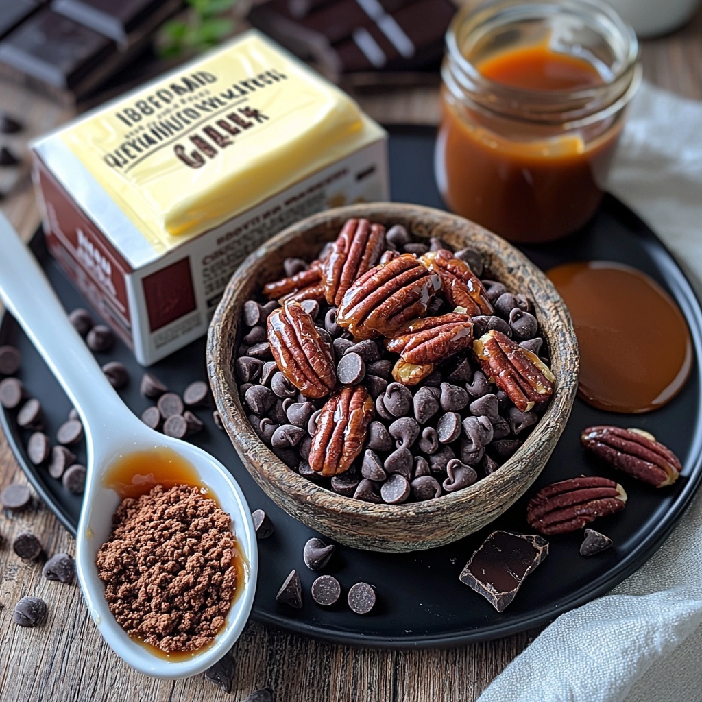 The magic of this Chocolate Turtle Cake with Caramel, Pecans, and Chocolate Drizzle Recipe lies in its straightforward ingredients. Each component plays a vital role in building layers of flavor and texture, from the moist chocolate cake base to the buttery caramel-pecan center, and the rich sauces that crown the finished masterpiece.