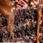 After the cake cools slightly but is still warm, drizzle the top with both caramel and chocolate sauce, creating that signature “turtle” look and flavor. If you like, sprinkle additional pecans over the top to enhance the texture and add a pretty finishing detail. This topping seals the deal and turns your cake into a showstopper dessert.