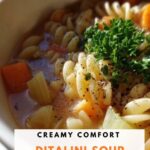 This Creamy Ditalini Soup is a comforting and hearty dish featuring tender ditalini pasta simmered in a flavorful vegetable broth with sautéed onions, garlic, carrots, and celery. Enriched with heavy cream and aromatic thyme, this soup is perfect for a cozy meal and garnished with fresh parsley for a burst of freshness.