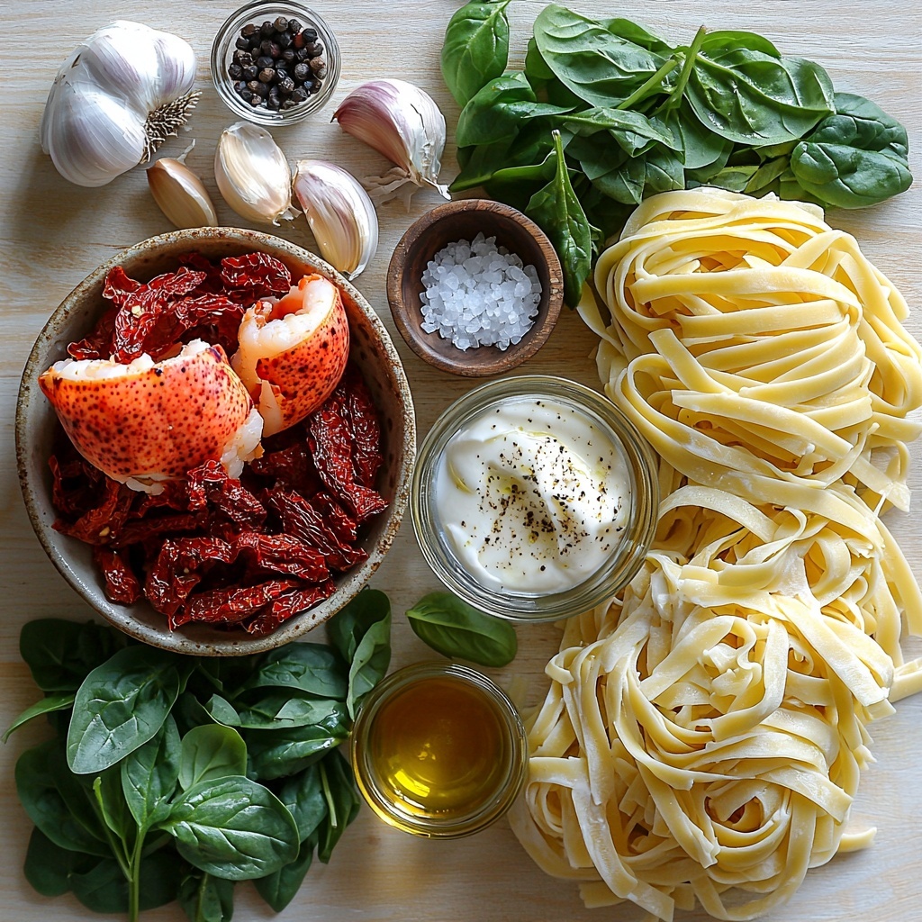 These ingredients might be simple, but each one plays a crucial role in crafting the rich, layered flavors and inviting textures that make this Creamy Tuscan Lobster Pasta Recipe so memorable. From the sweetness of the lobster to the tangy chew of sun-dried tomatoes, every element adds its own magic to the dish.