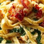 This Creamy Tuscan Lobster Pasta features succulent lobster tails tossed with fettuccine in a rich and velvety sauce made with heavy cream, sun-dried tomatoes, garlic, spinach, and Parmesan cheese. A luxurious and comforting dish perfect for a special dinner or entertaining guests.