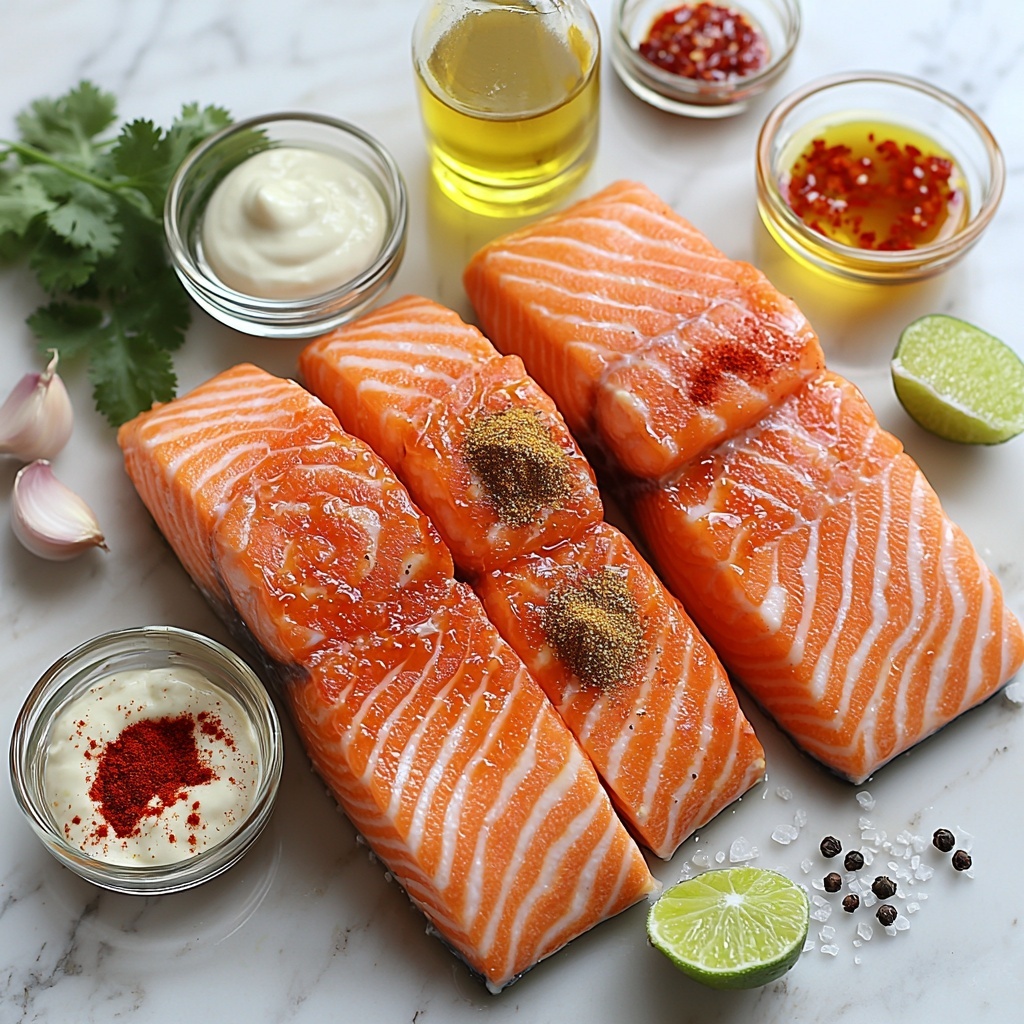This dish relies on a handful of straightforward ingredients, each playing a crucial role in delivering that trademark crispy texture and punchy Bang Bang flavor. From fresh salmon for succulent bites to a sauce that is a perfect harmony of creamy, spicy, and sweet, these essentials come together effortlessly to impress your palate.