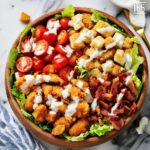 This Crispy Chicken BLT Salad Recipe is best enjoyed fresh and does not freeze well due to the fresh lettuce and croutons, which can become soggy upon thawing. It’s better to freeze cooked chicken tenders separately if you want to keep them on hand for future use.