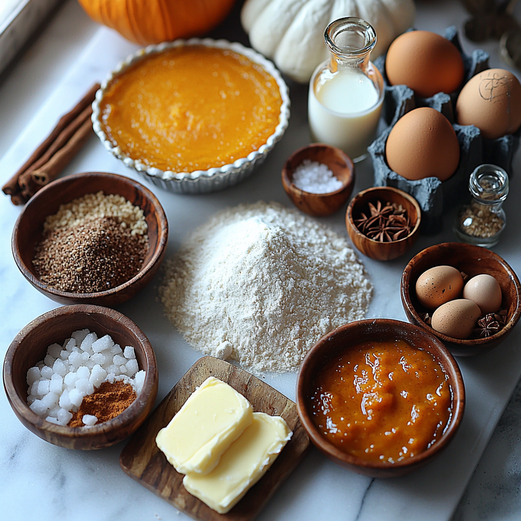 This recipe is wonderfully straightforward, relying on just a handful of essential ingredients that each play a key role. The crust ingredients bring that flaky, tender texture, while the filling ingredients combine to create a creamy, perfectly spiced pumpkin custard that’s nothing short of irresistible.