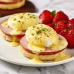 Eggs Benedict pairs wonderfully with crispy hash browns or a fresh green salad to cut through the sauce’s creaminess. Fresh fruit or roasted tomatoes also complement the savory flavors perfectly, rounding out the meal with refreshing notes.