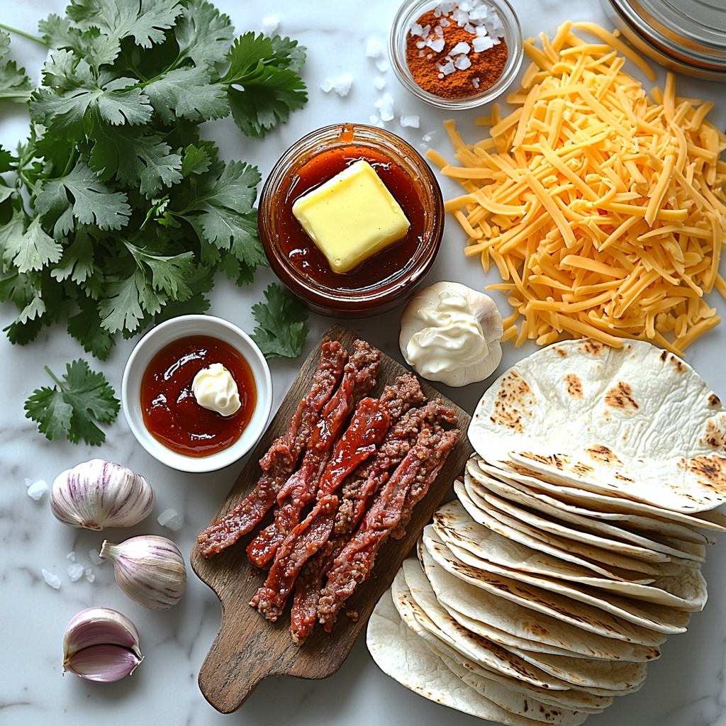 These ingredients are straightforward yet essential to crafting the perfect balance of textures and flavors for your tacos. Each component plays a vital role—from the tender, savory beef to the smoky spices and that deliciously creamy sauce that ties it all together.