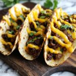 Warm your soft taco tortillas until they’re tender and pliable—whether in a skillet or microwave, it just takes a minute! Spoon generous amounts of the warm beef mixture onto each tortilla, then drizzle with the luscious taco sauce. Top with shredded cheddar cheese and, if you like, sprinkle with fresh cilantro for a gorgeous finishing touch. Fold ’em up and dig in immediately for maximum flavor joy.