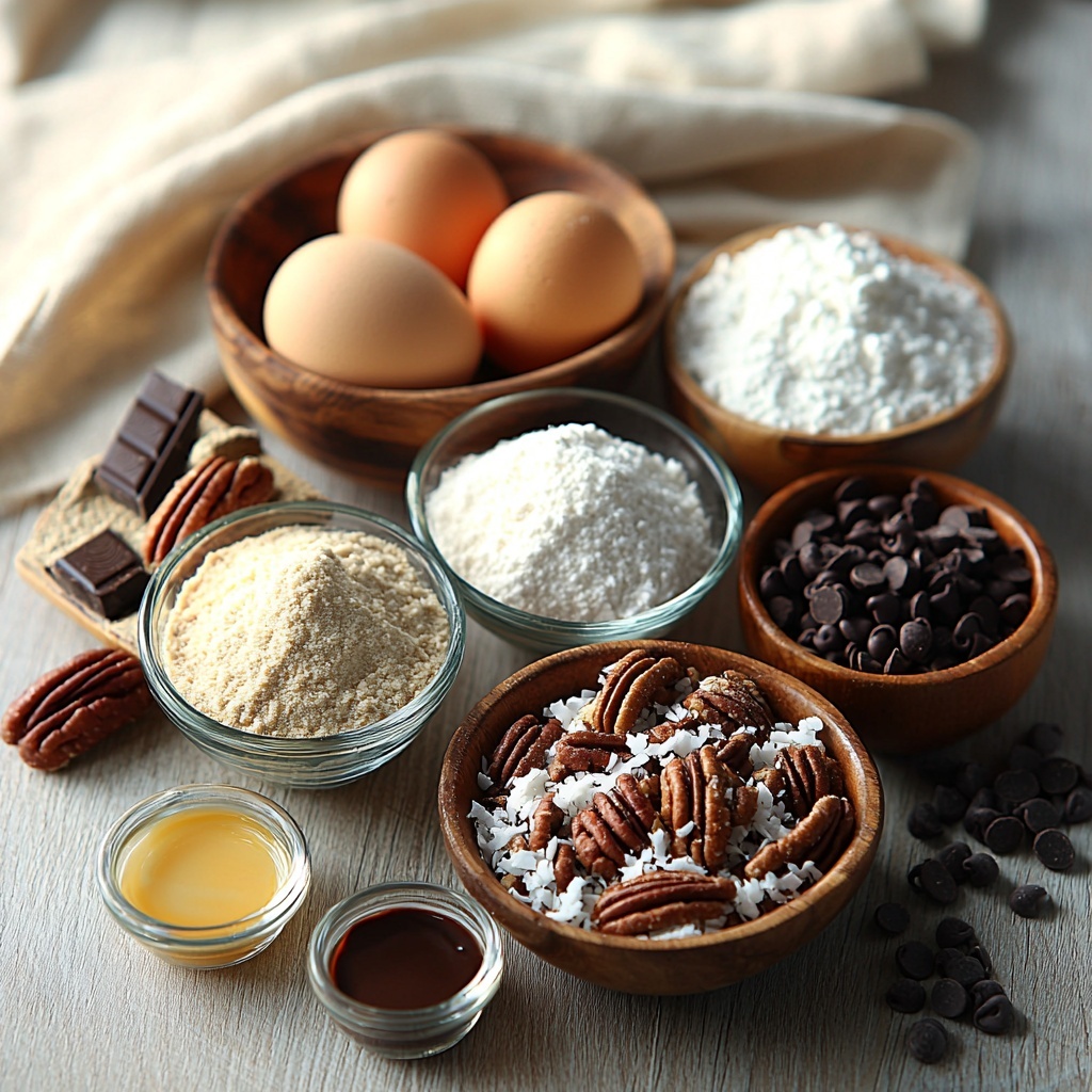 The magic of this German Chocolate Cookies Recipe starts with a simple but thoughtfully chosen lineup of ingredients. Each one plays a key role, from buttery richness to the deep cocoa flavor and the satisfying crunch and sweetness of coconut and pecans.