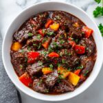 This traditional German Goulash is a rich and hearty beef stew slow-simmered until fork-tender, infused with sweet paprika, red wine, and a blend of aromatic herbs and spices. Featuring tender chunks of beef chuck, vibrant bell peppers, and carrots, this comforting dish delivers deep, robust flavors perfect for a cozy family meal.