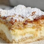 Next, beat the softened cream cheese until it’s completely smooth and free of lumps—that’s the secret to that famously creamy topping. Add two large eggs and the vanilla extract, mixing everything until combined. Gradually stir in the powdered sugar to sweeten and thicken the filling, followed by a quarter cup of melted butter, which keeps the topping rich and silky. Your filling is now ready to spread!