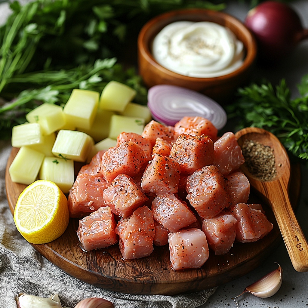 - 1 1/2 lbs. Chicken Thighs or Chicken Breast, cut into bite-size pieces