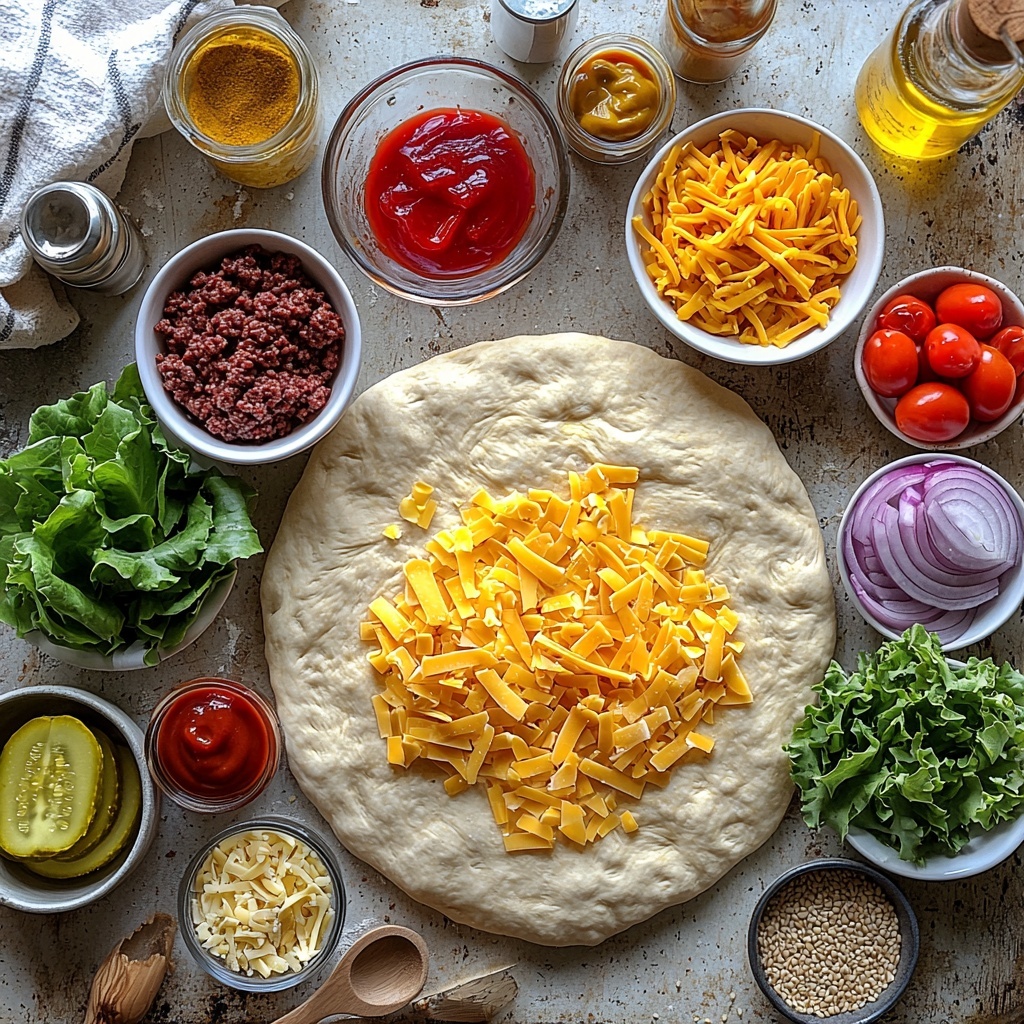 Gathering your ingredients for this Homemade Cheeseburger Sheet Pan Pizza Recipe is a breeze, with each one playing a vital role in balancing flavor, texture, and visual appeal. From the savory ground beef to the tangy condiments and crisp fresh toppings, these simple essentials come together to create something truly special.