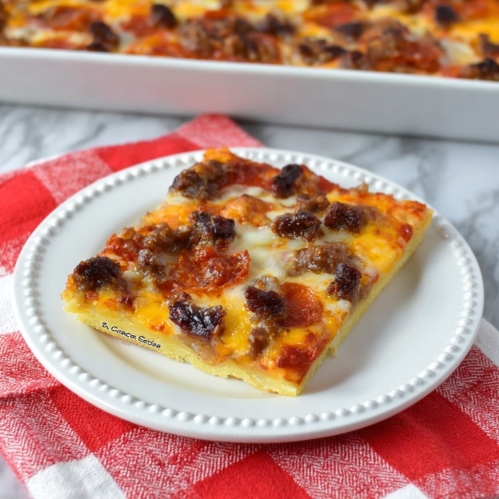 Try serving this sheet pan pizza family-style, directly from the pan at the center of your table to encourage sharing and conversation. For a fun twist, turn leftovers into mini pizza sliders by reheating small slices in sandwich buns. Adding a drizzle of Thousand Island dressing or a side of creamy ranch can give a playful dipping experience that everyone will love.