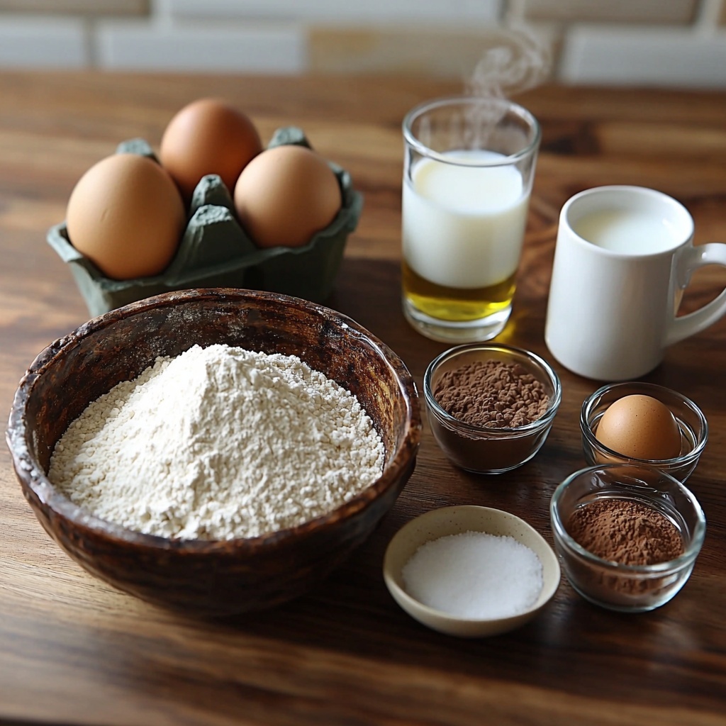 The magic of this Homemade Chocolate Cake Recipe lies in its straightforward, no-fuss ingredients. Each one plays an essential role, whether it’s lending moistness, a tender crumb, or that deep chocolate taste that makes this cake so memorable.
