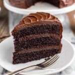 This homemade chocolate cake is a moist, rich, and tender dessert perfect for any occasion. Made with cocoa powder and a combination of baking powder and baking soda, it delivers a fluffy and flavorful chocolate experience. The batter includes boiling water which helps enhance the cocoa flavor, and the cake is baked to perfection in two round pans.