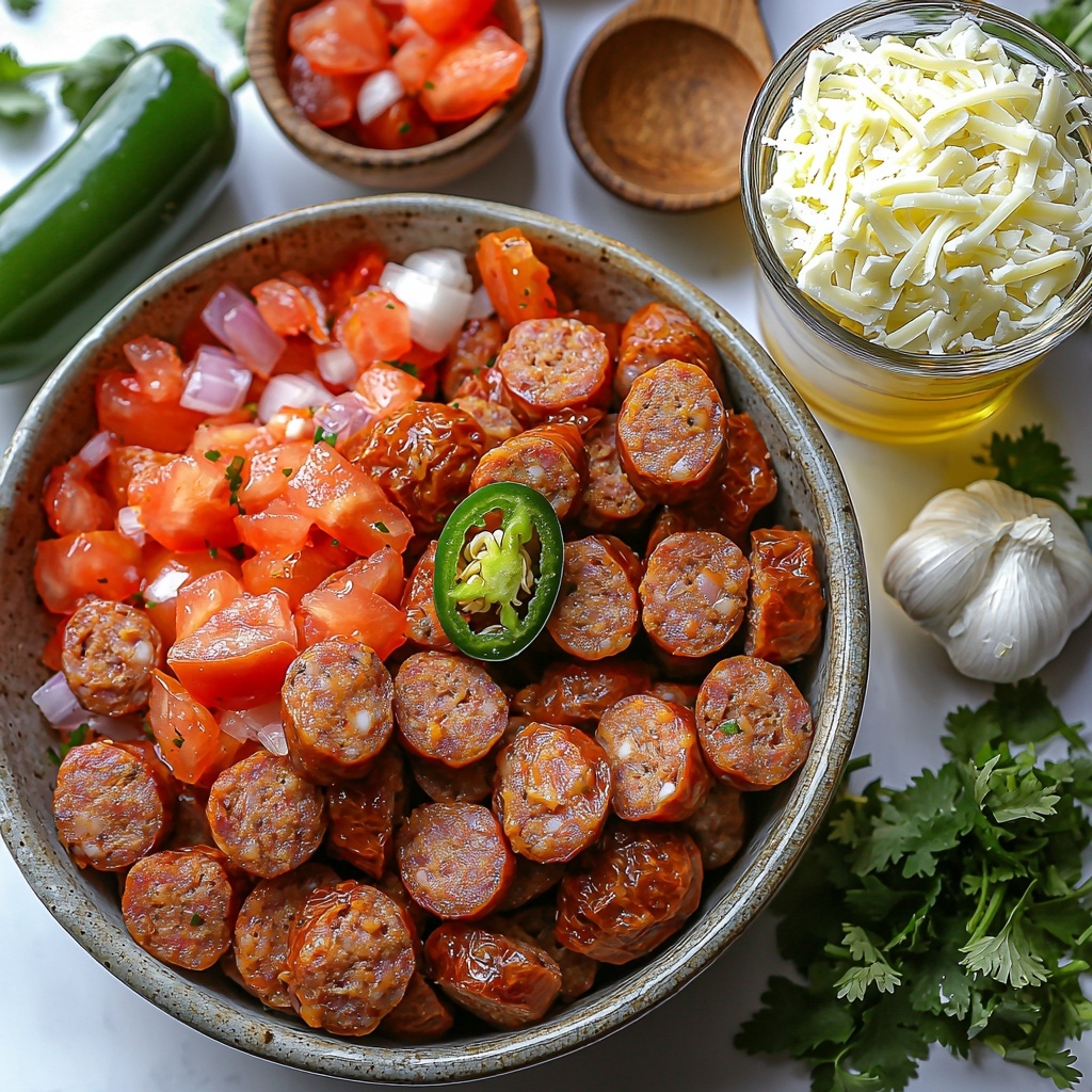 Sprinkle the shredded Monterey Jack cheese evenly over the chorizo mixture and stir continuously. Watch as the cheese melts into creamy perfection, coating every bite with that signature gooeyness you’re craving. This should take about 2 to 3 minutes — patience here is rewarded with absolute deliciousness.