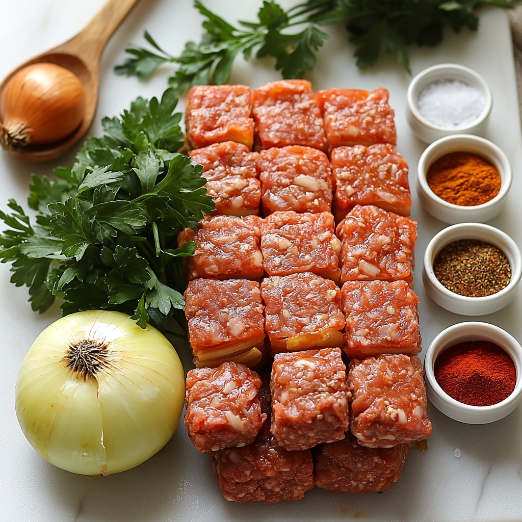 The beauty of this Kafta Kebabs Recipe lies in its simplicity and the harmony of its ingredients. Each component plays an essential role—from the fresh parsley that brightens the flavor to the seven spice blend that adds depth, making each bite unforgettable. Here’s what you’ll need to bring this classic dish to life: