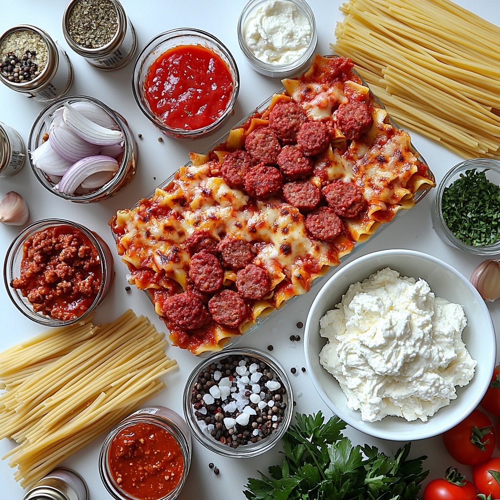 These ingredients are straightforward yet essential for building the depth of flavor, creamy texture, and hearty satisfaction in this recipe. Each element, from savory meats to aromatic herbs and smooth cheeses, plays a crucial role in bringing the dish together.