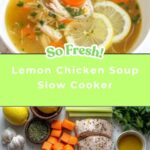 A comforting and tangy Lemon Chicken Soup slow-cooked to perfection with tender chicken, fresh vegetables, and a zesty lemon finish. This healthy, gluten-free main course is packed with protein and bright flavors, perfect for any day.