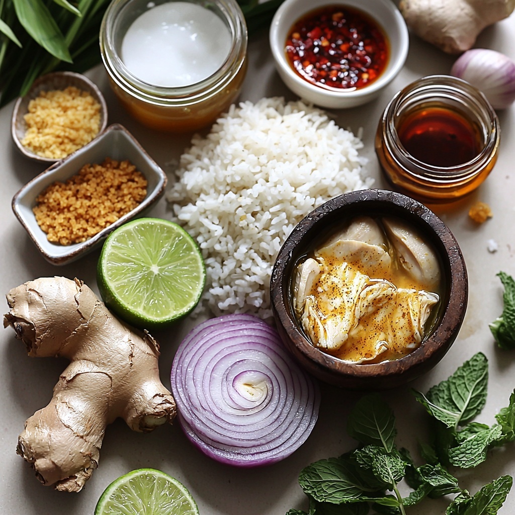 For a fun twist, serve the broth in individual small bowls while presenting the chicken and rice on a shared platter so everyone can assemble their own bowls. Alternatively, garnish with toasted peanuts or a drizzle of coconut cream for added texture and luxe appeal.