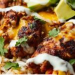 For the best taste, reheat the chicken and rice in a skillet over medium heat or in the microwave until warmed through. Freshly add the street corn mixture and toppings just before serving to preserve their texture and flavor punch—the last step that makes this Loaded Street Corn Chicken Rice Bowl Recipe truly special.