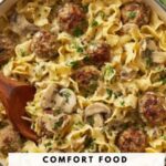 This hearty Meatball Stroganoff recipe combines tender Italian-seasoned meatballs with a rich, creamy mushroom sauce served over egg noodles. A comforting twist on the classic beef stroganoff, this dish offers layers of flavor from garlic, Worcestershire sauce, Dijon mustard, and a touch of white wine, perfect for a satisfying family dinner.