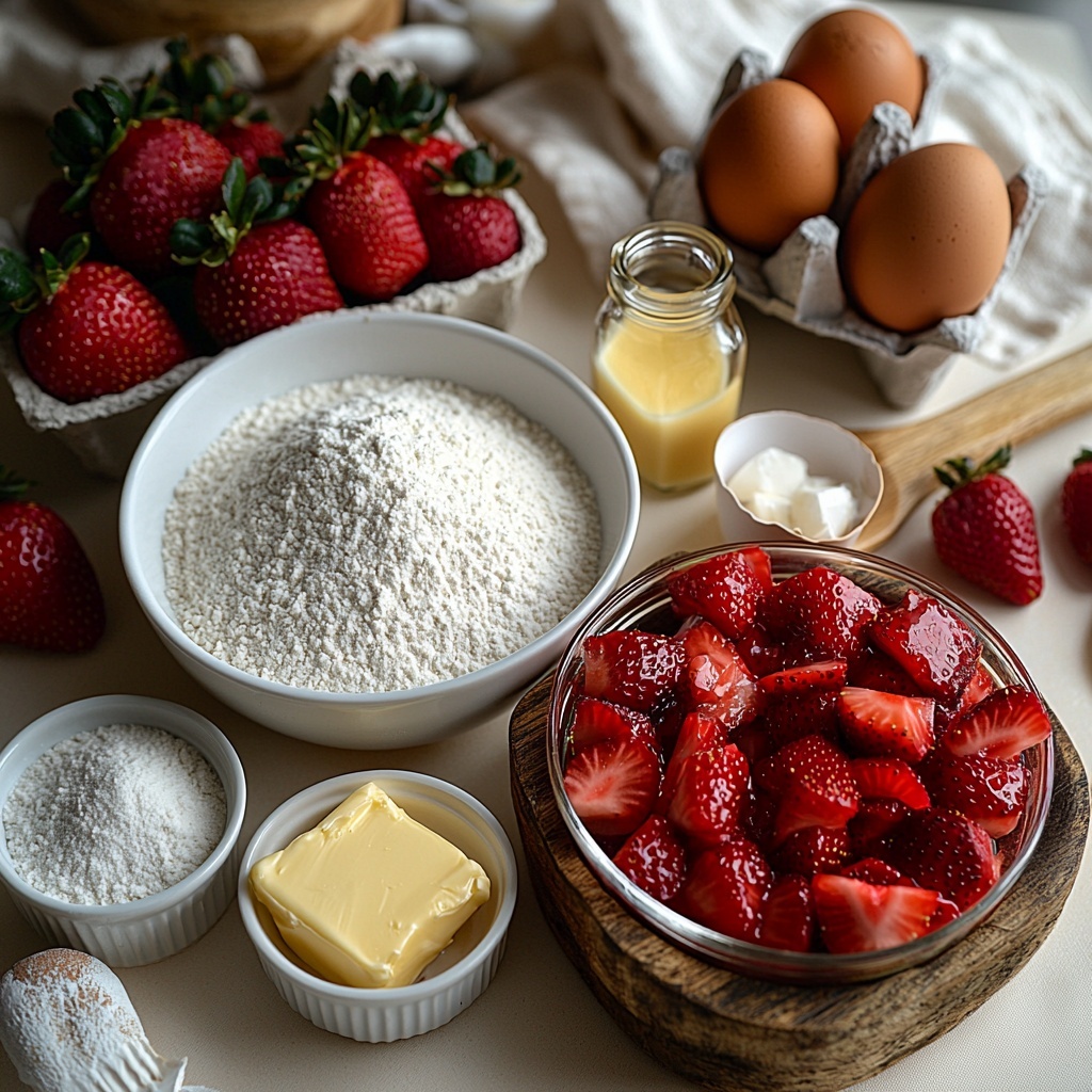 The magic behind Mini Strawberry Bundt Cakes comes from a handful of simple but essential ingredients. Each one plays a unique role in creating that perfect balance of sweet, moist, and flavorful cake that melts in your mouth.