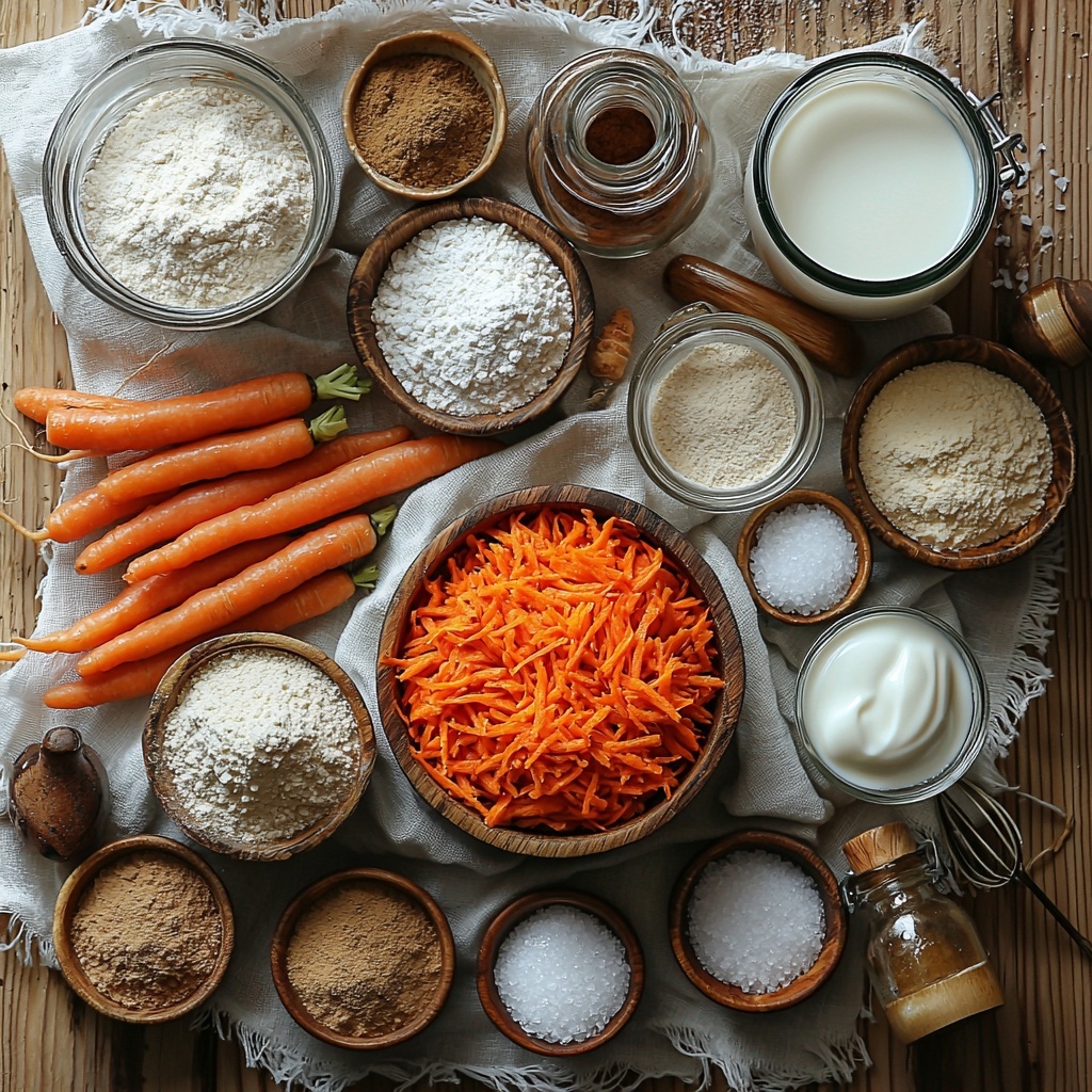 All the ingredients in this Moist Vegan Carrot Cake with Cream Cheese Frosting Recipe come together in a beautiful harmony, creating layers of flavor, moisture, and texture. Each element is carefully chosen to ensure that every bite is soft, spiced perfectly, and topped with the creamiest frosting that doesn’t compromise on vegan goodness.