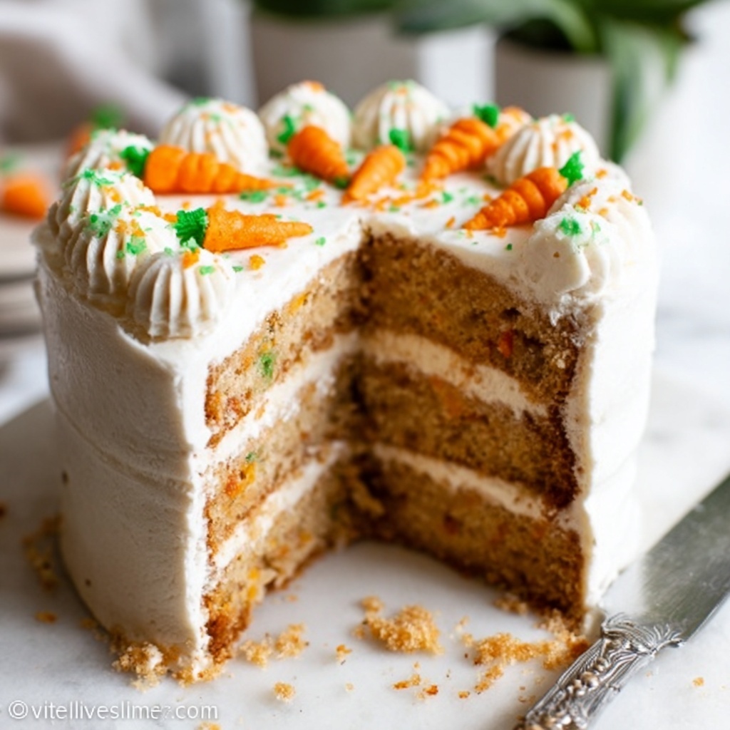 This carrot cake pairs beautifully with a warm cup of spiced chai or a refreshing glass of almond milk. For brunch or dessert spreads, fresh fruit like sliced oranges or berries adds a juicy contrast that balances the sweetness and richness of the cake without overwhelming its delicate flavors.