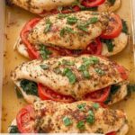 Mozzarella Stuffed Chicken with Tomato and Basil is a flavorful and elegant baked chicken dish featuring tender chicken breasts stuffed with fresh mozzarella cheese, topped with a vibrant tomato and basil mixture seasoned with balsamic vinegar and Italian herbs. This easy-to-make recipe is perfect for a quick weeknight dinner or a special meal, delivering juicy chicken with a delicious combination of creamy cheese and fresh, tangy flavors.