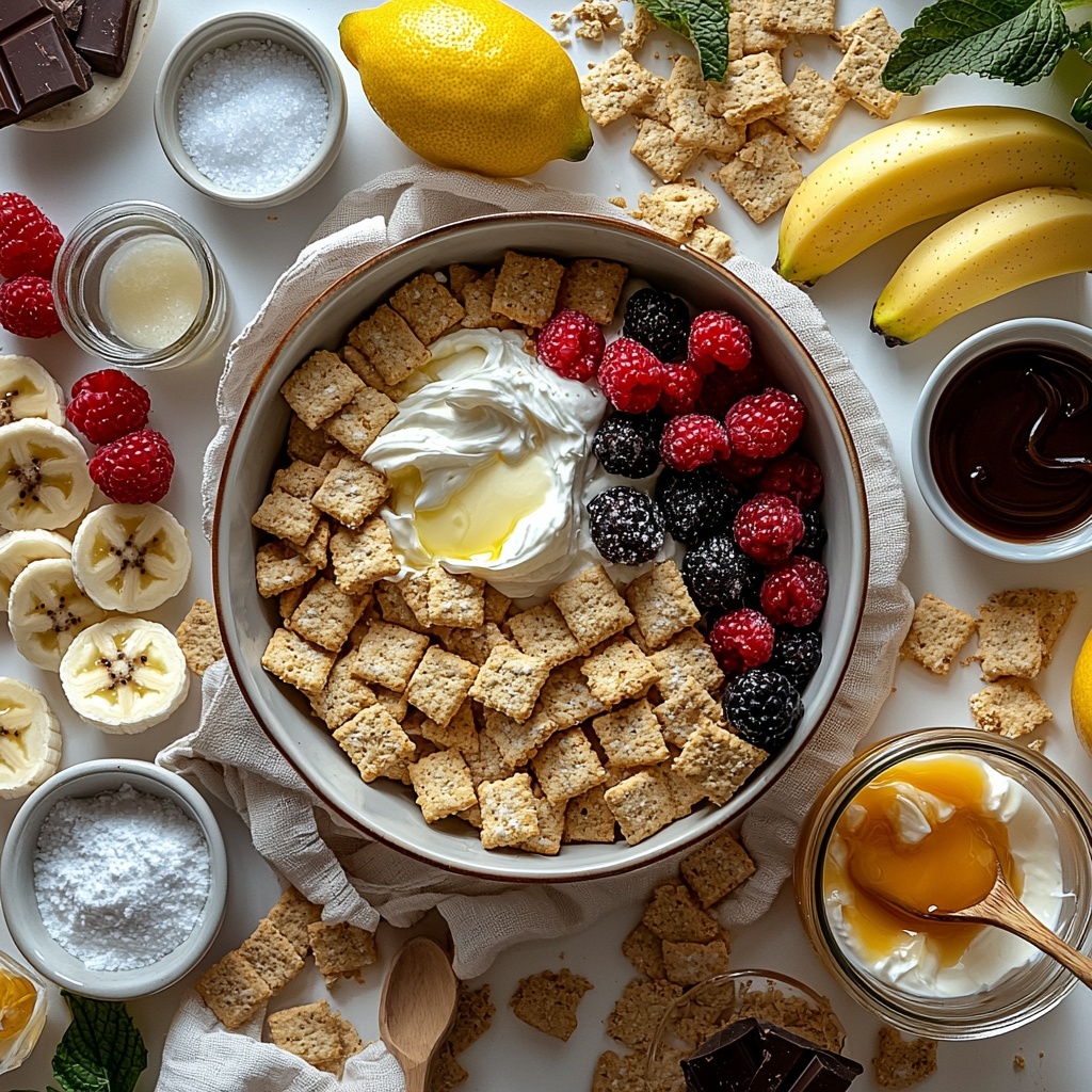Preparing this No Bake Creamy Graham Cracker Pie with Fresh Toppings Recipe is wonderfully simple because it relies on humble yet essential ingredients that each bring something special to the table—whether it’s richness, sweetness, or that irresistible graham cracker crunch.
