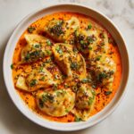 This Oven-Baked Dumplings with Peanut Sauce recipe offers a delicious and easy way to enjoy dumplings with a rich, creamy peanut sauce and fresh vegetable accompaniment. The dish is baked in the oven for a perfect blend of savory flavors, enhanced by aromatic garlic, soy sauce, and a touch of spice from optional chili crisp. Finished with fresh herbs and sesame seeds, this comforting meal serves 4 and can be prepared quickly with minimal fuss.