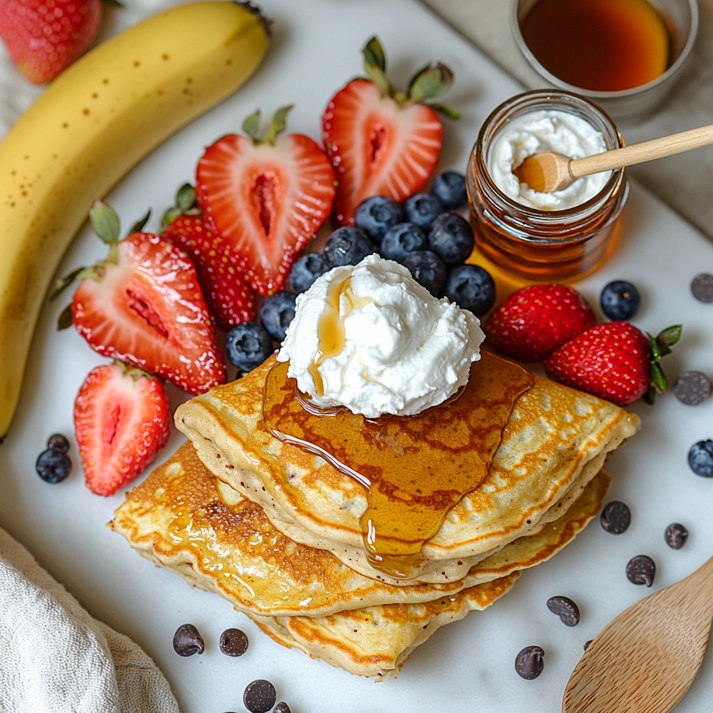 These ingredients are straightforward, fresh, and essential for creating pancakes that balance sweetness, creaminess, and texture perfectly. Each component plays a vital role—from the soft base of the pancakes to the juicy burst of fresh fruit and the rich finish of syrup.