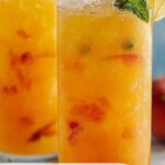 - Pour the lemonade: Pour the chilled peach lemonade over the ice-filled glasses.